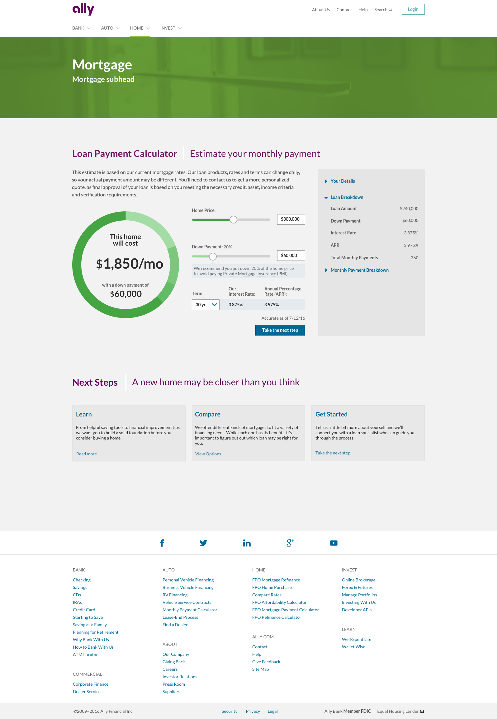 A/B tested lead form improved conversion by 20% | 3 live-rate mortgage calculators launched | Calculators featured on Cheddar TV | Calculators live at Ally.com