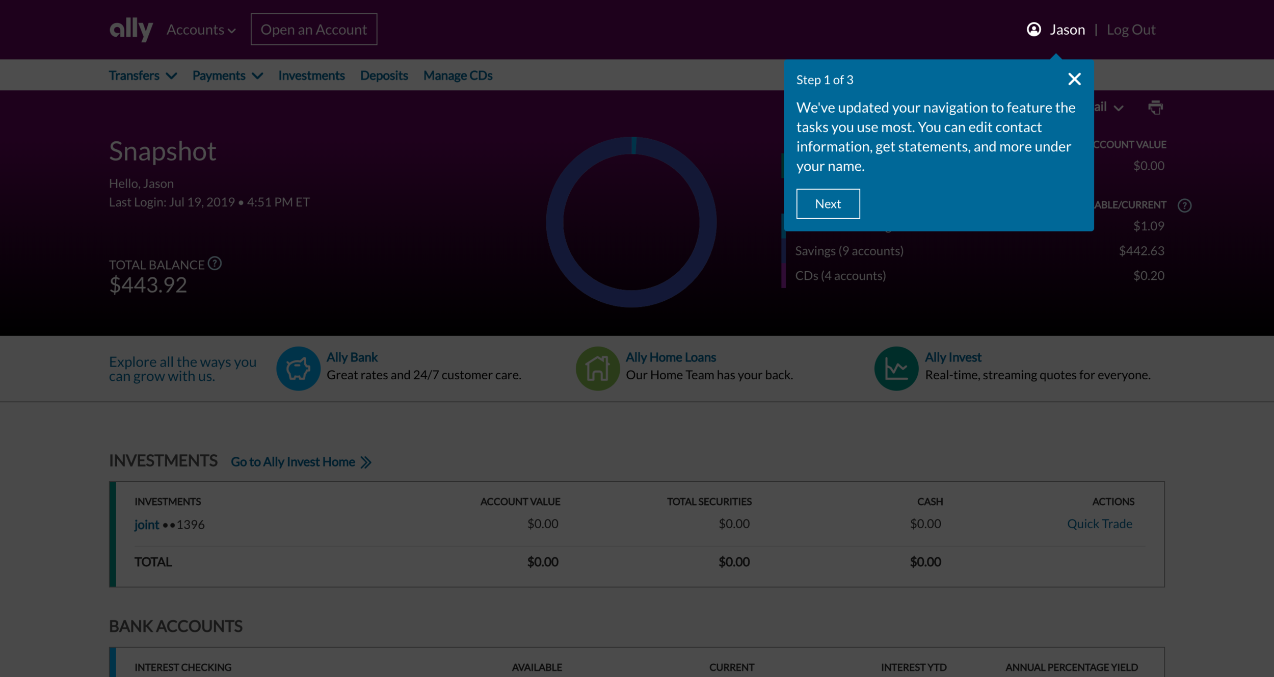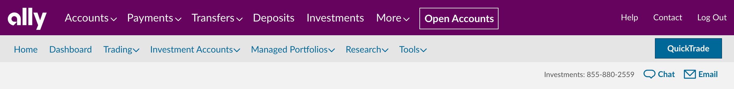 Integrating Ally Invest into the Ally authenticated ecosystem required a unified navigation system for users with two very different mindsets — banking vs. investing — across desktop, mobile web, and native app. The existing Invest navigation was built in isolation from Ally Bank's structure.